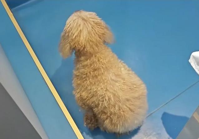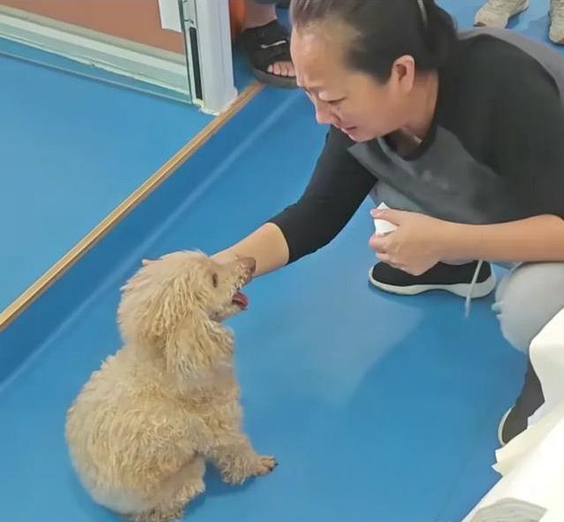其中一位女主人蹲下来,想再摸摸狗狗的头。她伸出手,轻轻擦掉眼角的泪,试图给狗狗一点安慰。可狗狗却躲开了,慢慢走到角落,蜷缩着身子,像个被遗弃的孩子。